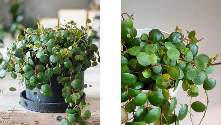 This plant family has species that stay rather small and have the cutest foliage. This is the Dischidia Ovata and she is especially adorable due to her watermelon-like leaves. She will grow long trailing vines covered with these leaves. You can either grow her on wood covered in sphagnum moss or make a special potting mix to meet her needs.