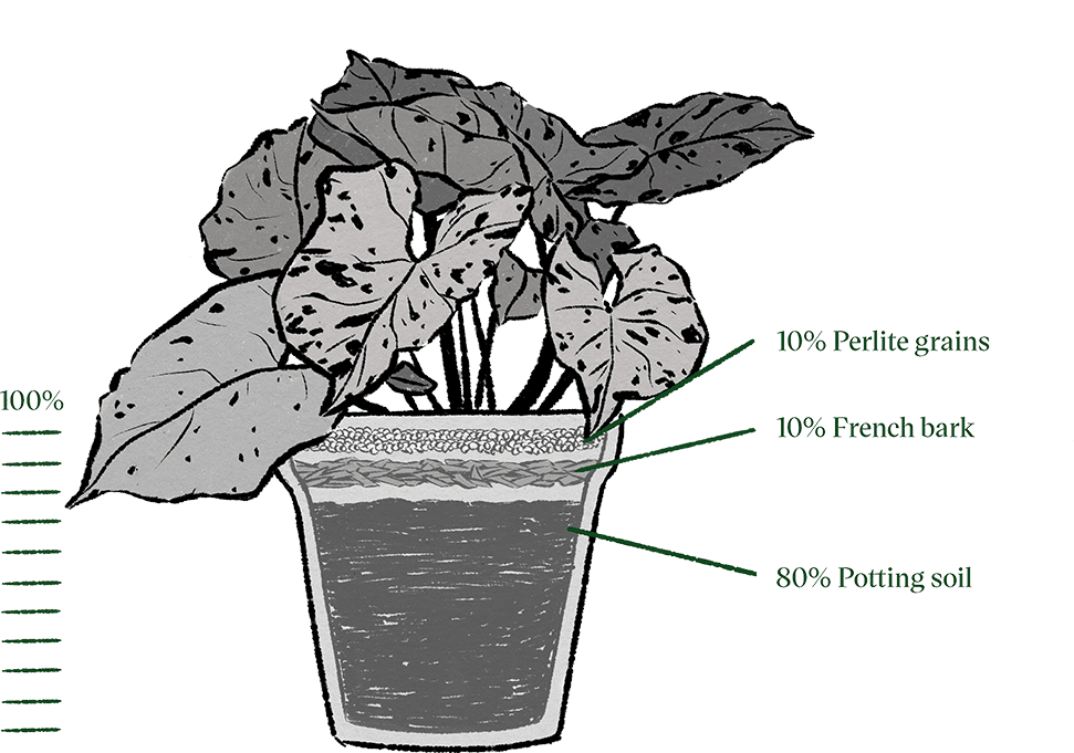 *PLNTS tip: We would like to add the percentages for a good mixture of the substrates. Of course, you are free to do this in your own way. We are not saying that this distribution will work best for you, but we can say that this division works well for us.